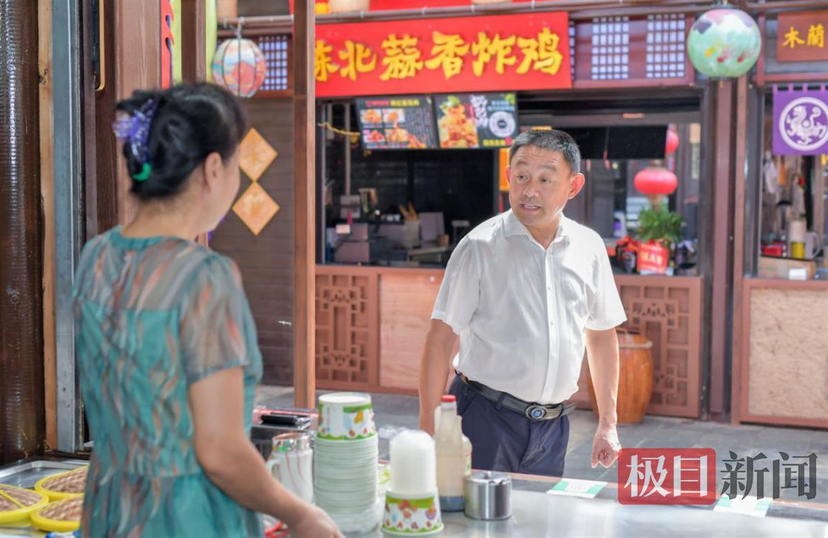 正与木兰不夜城商户交流的葛天才