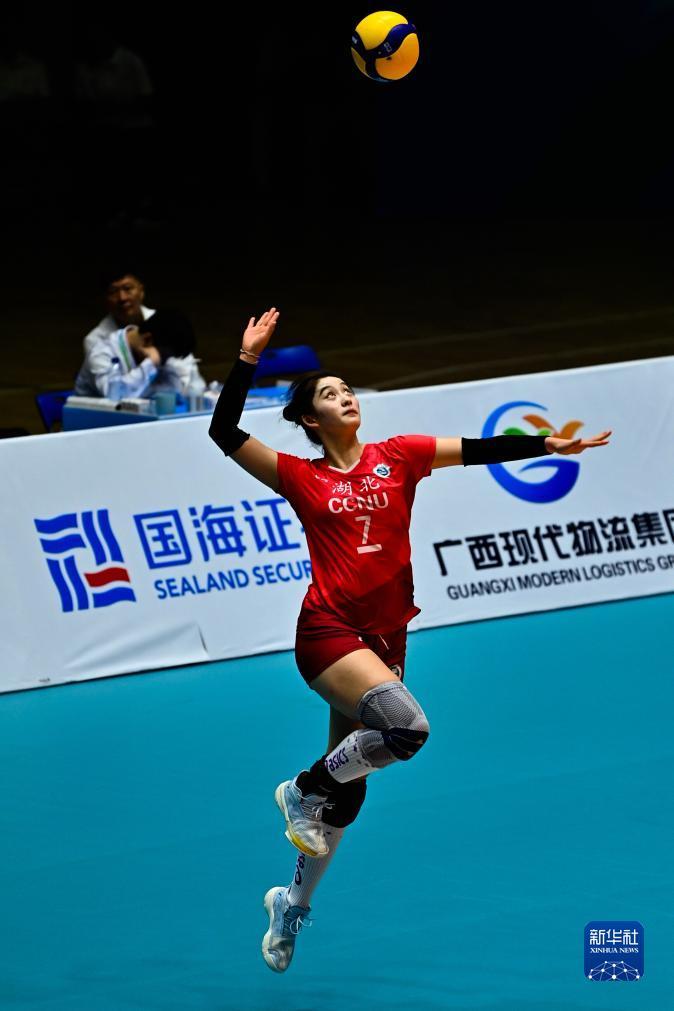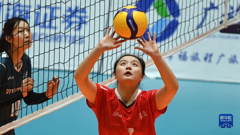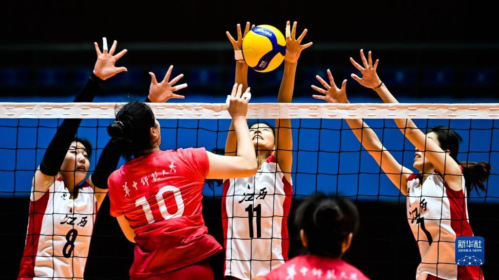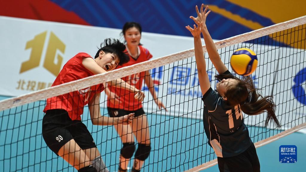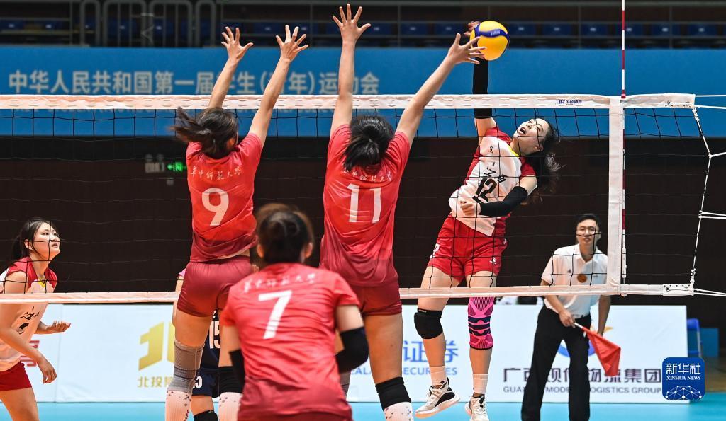 当日,第一届全国学生(青年)运动会(校园组)排球大学女子组小组赛第三轮比赛在广西钦州举行。