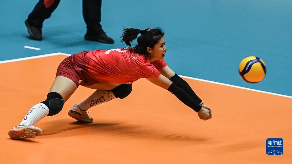 10月31日,江西队球员戴玉妹在比赛中救球。最终湖北队以3比1战胜江西队。新华社记者 张爱林 摄