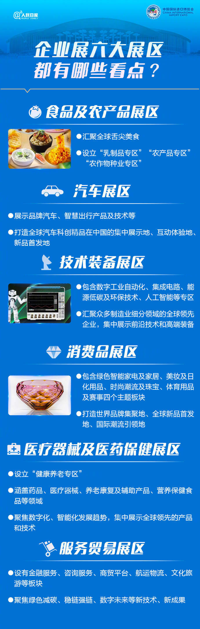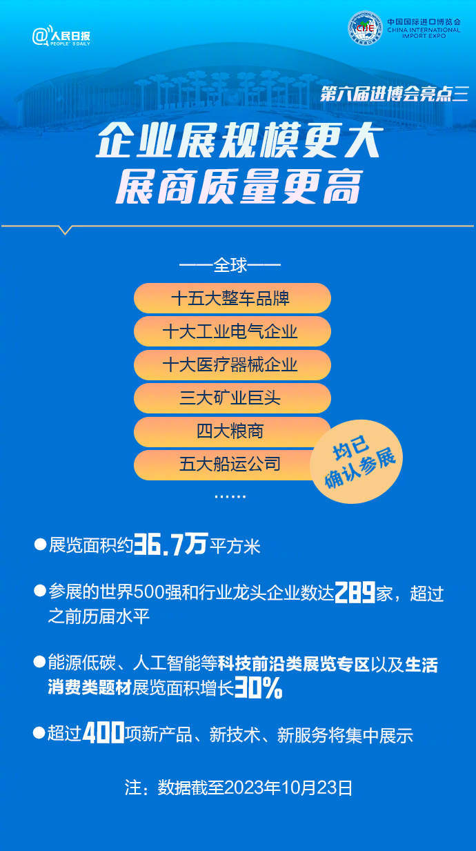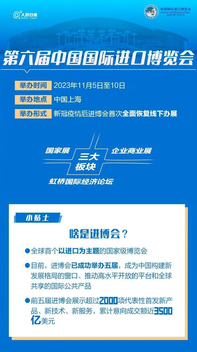 第六届进口博览会将于11月5日至10日在上海举办,预计将迎来154个国家、地区和国际组织的来宾。舌尖美食、智能装备、医疗器械、时尚潮流…多种展品将进行全球首发、亚洲首秀、中国首展。这届进博会有啥不一样?哪些“黑科技”将亮相?戳图了解↓↓