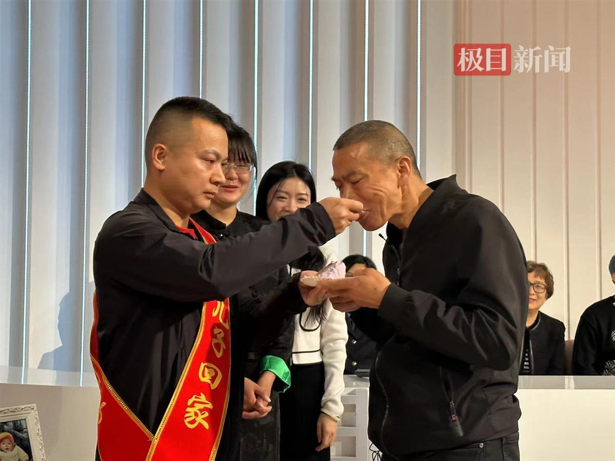 崔洪磊(王润)为父亲喂蛋糕(受访者供图)