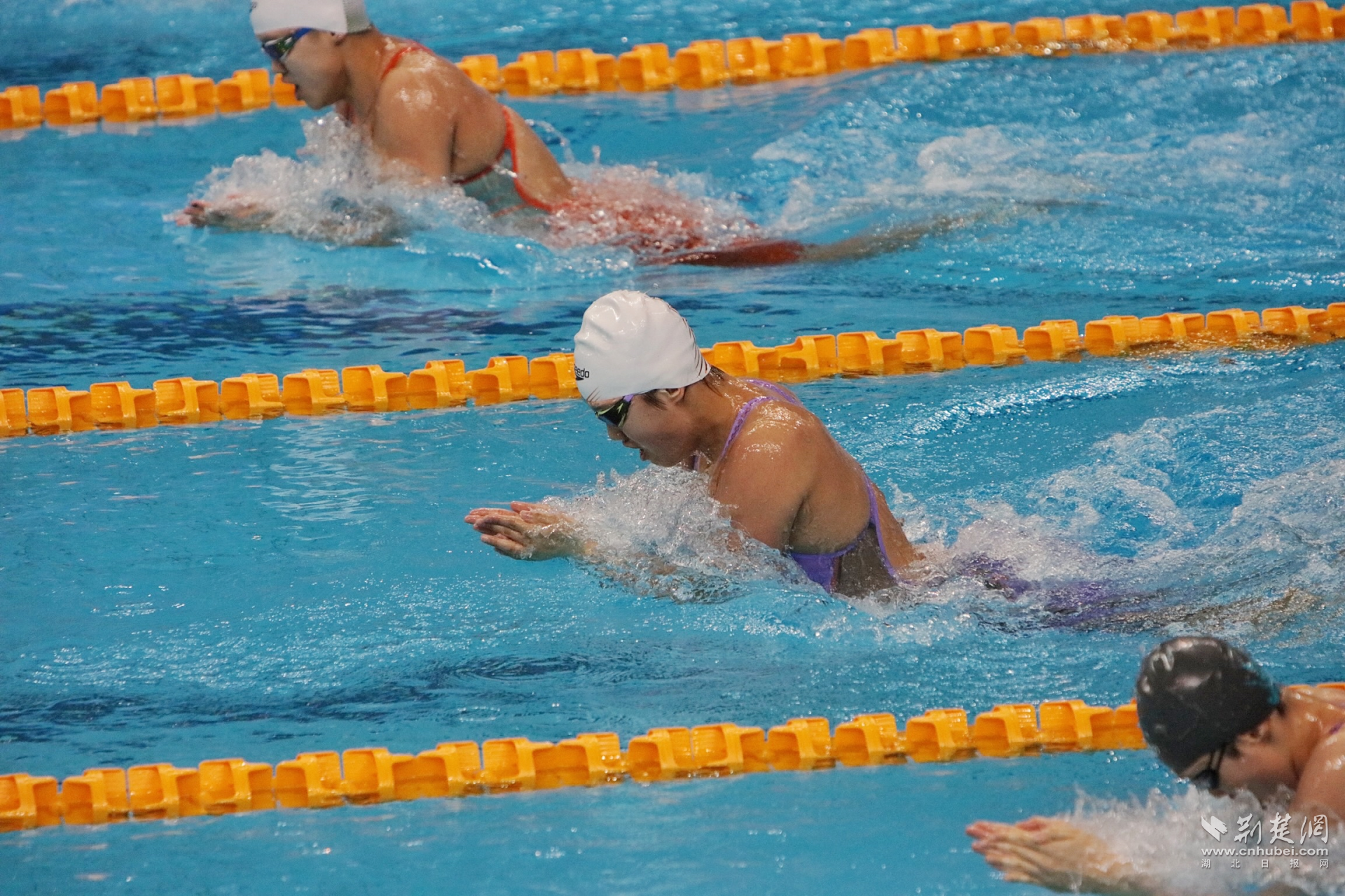 孔姝雅(中道)在女子100米蛙泳决赛中。( 通讯员供图)