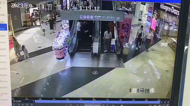 △朱秋涛(穿黑衣者)协助商场保安将伤者抬出商场