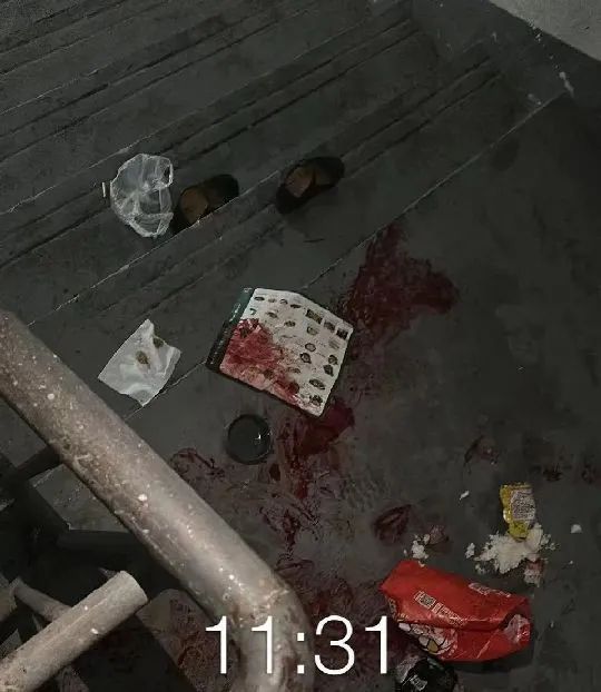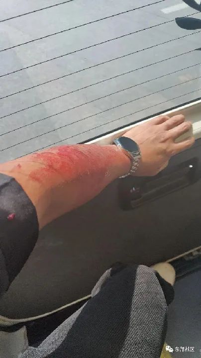 △朱秋涛抬受伤群众时,手上留下她的血迹。