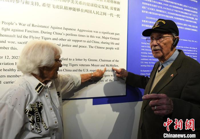 图为98岁的飞虎队老兵梅尔文·麦克马伦夫妇在重庆史迪威博物馆参观。中新网记者 周毅 摄