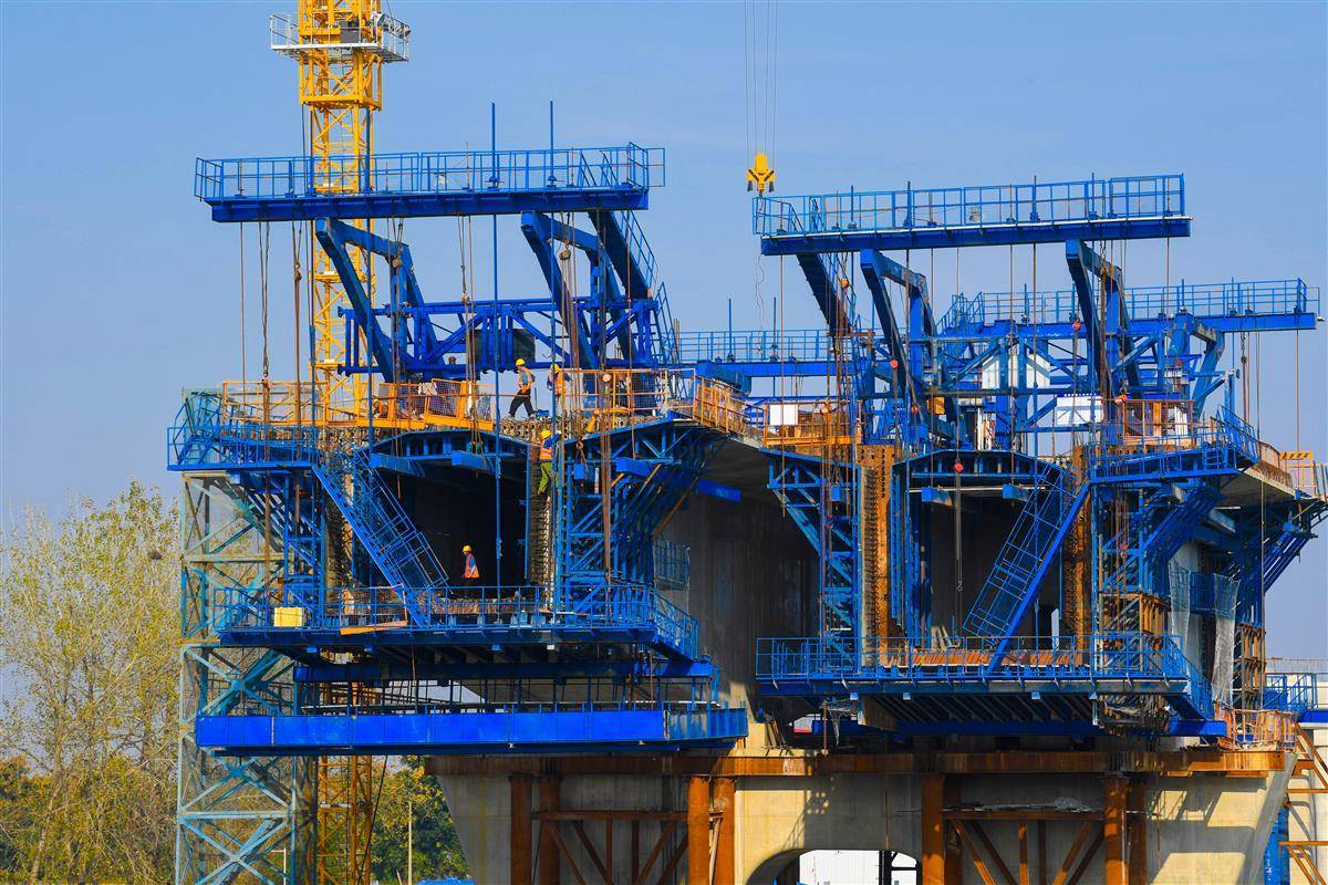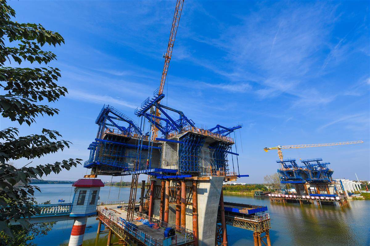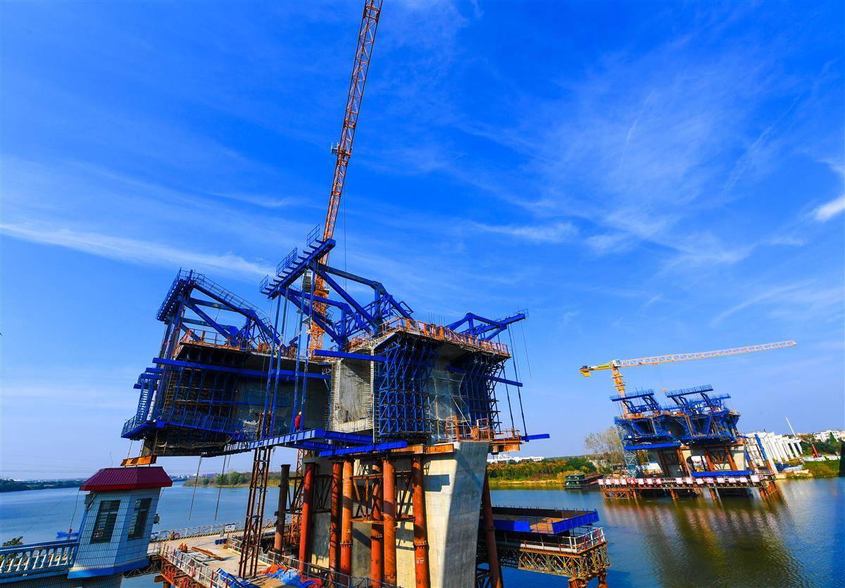 11月2日,襄阳新唐白河大桥桥面实施挂篮作业。该桥建成后,桥面距离水面22米,主航道主跨125米,可满足千吨级船舶通行。新桥预计明年7月建成通车,比计划工期提前10个月。唐河航道历史上是鄂豫两省“南船北马”的重要线路,现恢复唐河航运,将成为我省“一主三江一网四支”航道体系建设的重要组成部分。(湖北日报全媒记者 田悦通讯员 任伟谢勇摄)