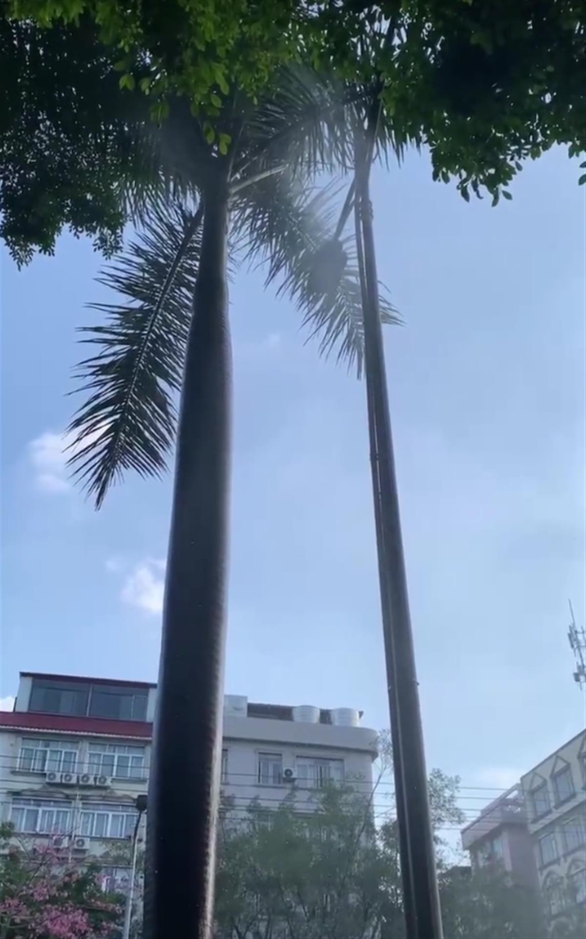 路灯杆喷洒水汽(网络视频截图)