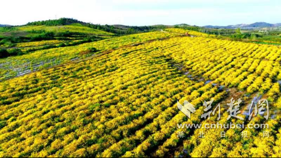 刘升镇地处山地丘陵地带,气候、土壤等自然条件适合野菊花生长,当地利用独特的环境气候特点和荒山荒坡地势,引进枣阳市强盛农业科技有限公司种植3000亩优良野菊花品种,连片开发种植。