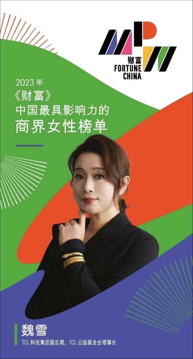 根据《财富》于2023年10月25日发布的最新榜单,TCL科技集团副总裁、TCL公益基金会理事长魏雪因在商业管理、企业品牌建设、企业社会责任和可持续发展体系建设等方面所取得的成就,荣登“中国最具影响力的商界女性”榜单,充分展现了当代女性的魅力。