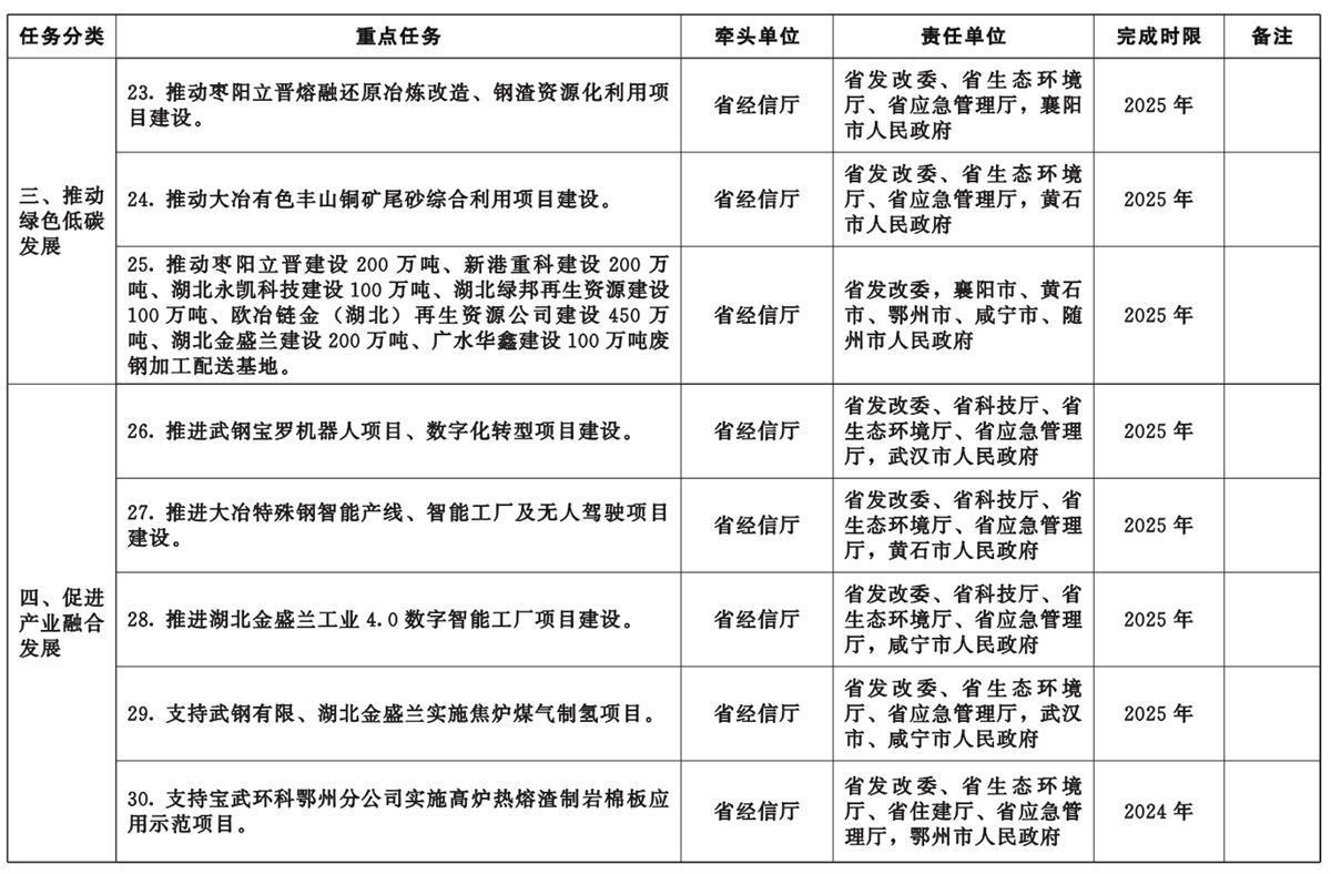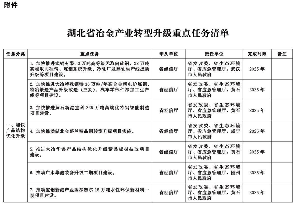 湖北省冶金产业转型升级重点任务清单同时发布,共30项重点任务,均计划在2025年之前完成。