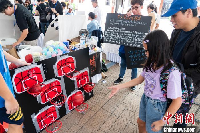 图为小朋友体验用投篮的方式了解中国秋冬传统腊味的制作知识。 中新网记者 侯宇 摄