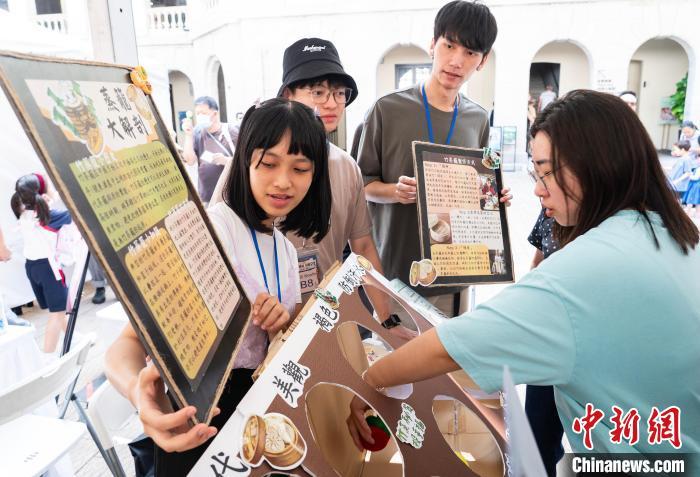 图为通过问答方式介绍中国传统竹制蒸屉的小游戏吸引市民参与。 中新网记者 侯宇 摄