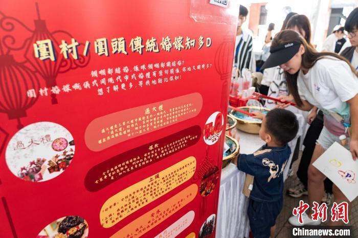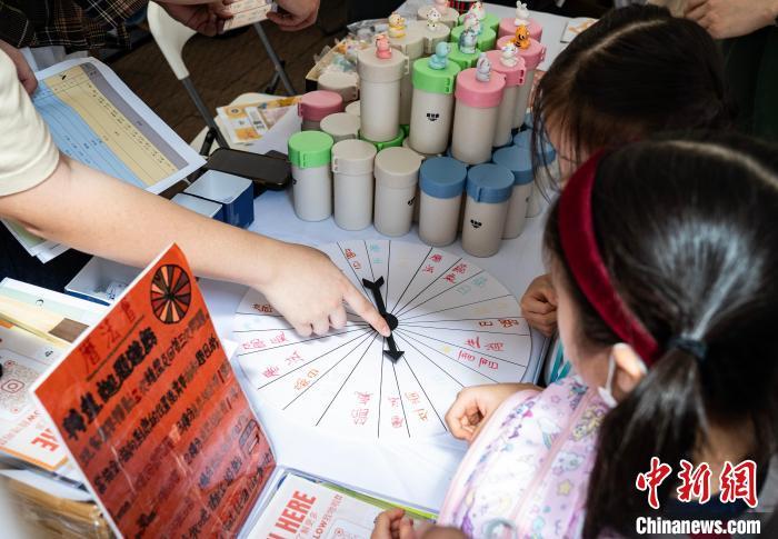 图为介绍香港围村传统婚俗的小游戏吸引家长带小朋友参与。 中新网记者 侯宇 摄