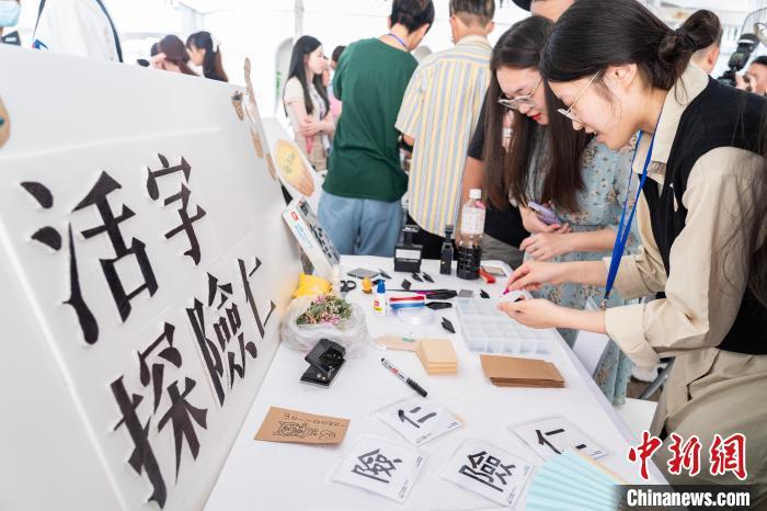 图为市民游客通过体验捡字钉的方式了解中国传统活字印刷术。 中新网记者 侯宇 摄