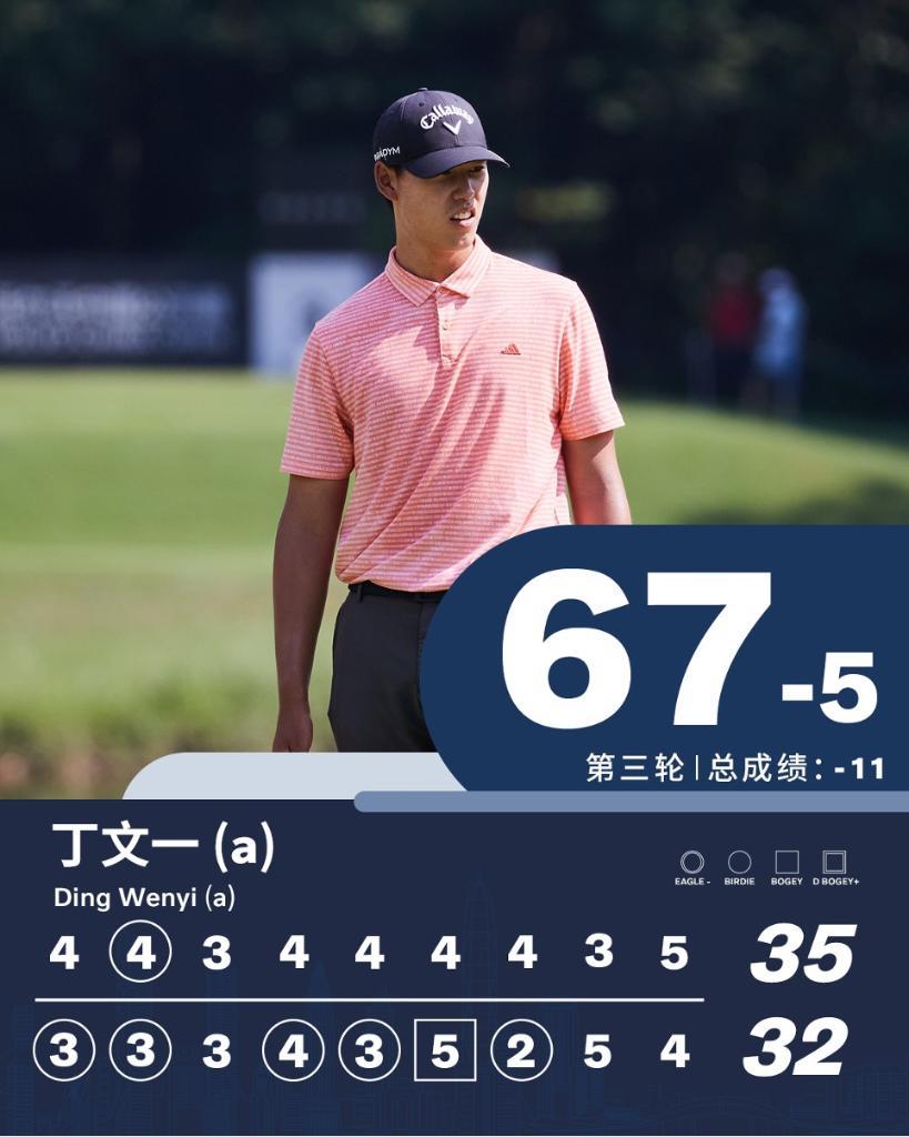 中国小将丁文一同样发挥出色,当日以67杆的成绩完赛,总成绩低于标准杆11杆,与泰国球员萨里特暂时并列第二位。