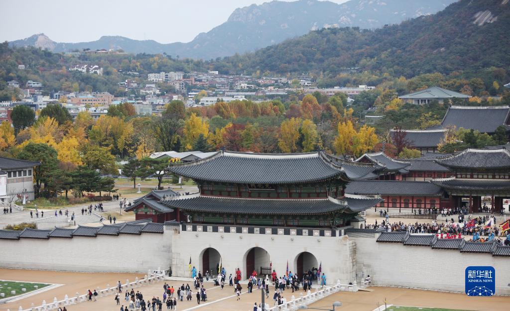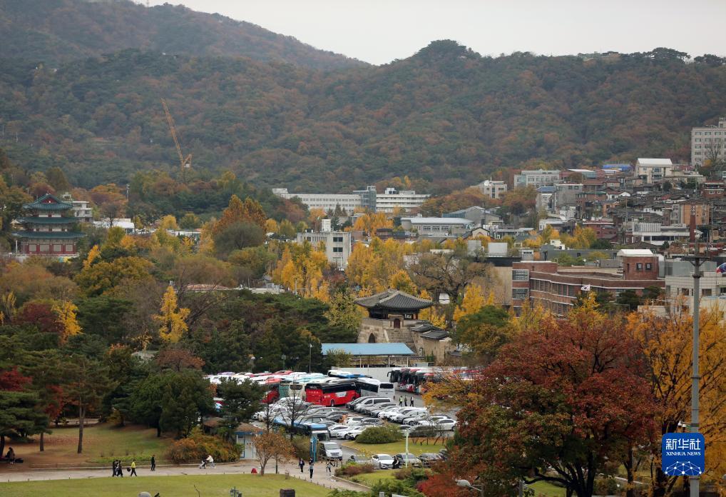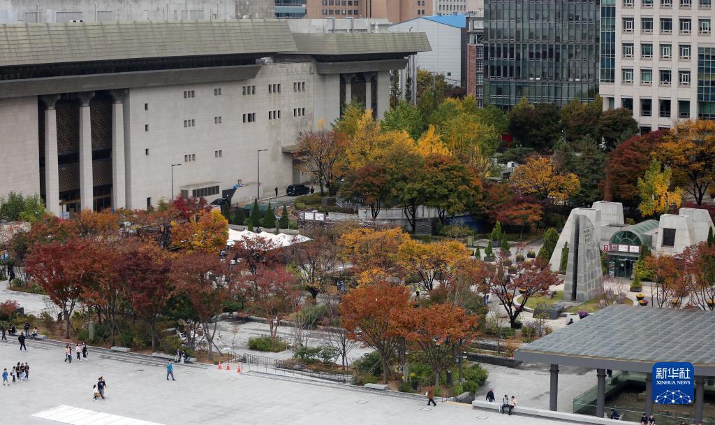 这是11月5日拍摄的韩国首尔市光化门广场附近的秋景。