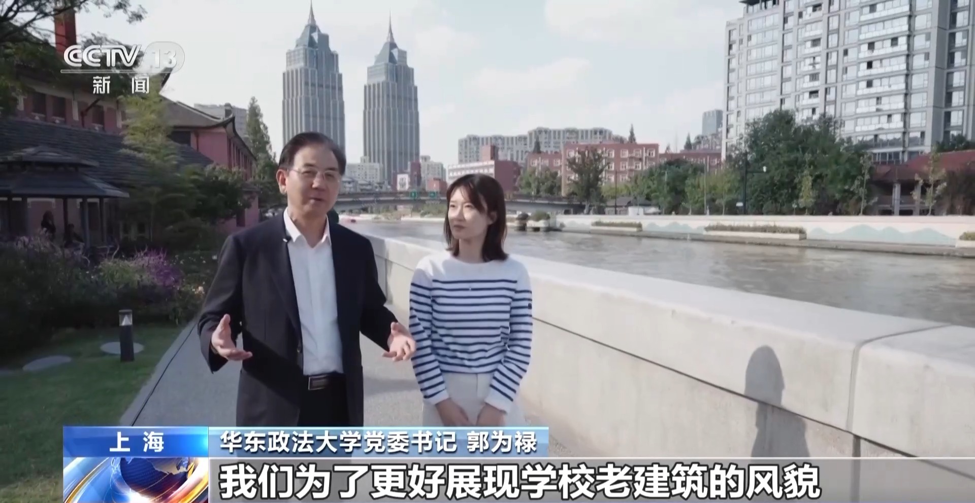 总台记者 宁婉婷:“苏河十八湾”,每一湾都大有文章。在穿行过华政段时,几乎要拐一个180度的大弯,百年校园就在这里打开围墙,还岸于民,还景于民,从此,也与城市更加紧密相连。
