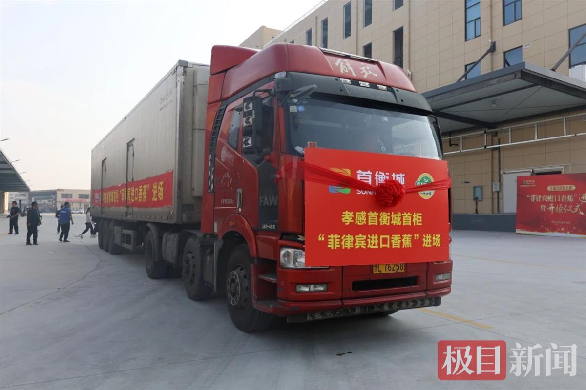 11月3日上午9时,满载首柜23吨菲律宾进口香蕉的冷藏车运抵湖北孝感首衡城·华中国际食品产业新城进场开柜。这标志着首衡城启动运营已进入备货阶段。