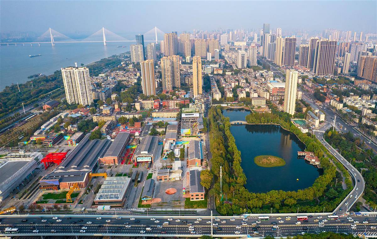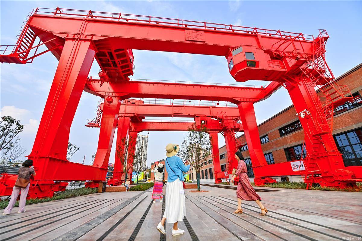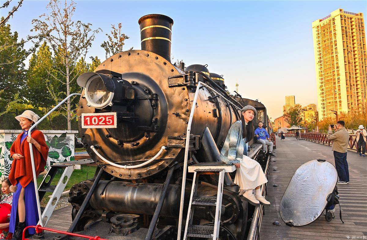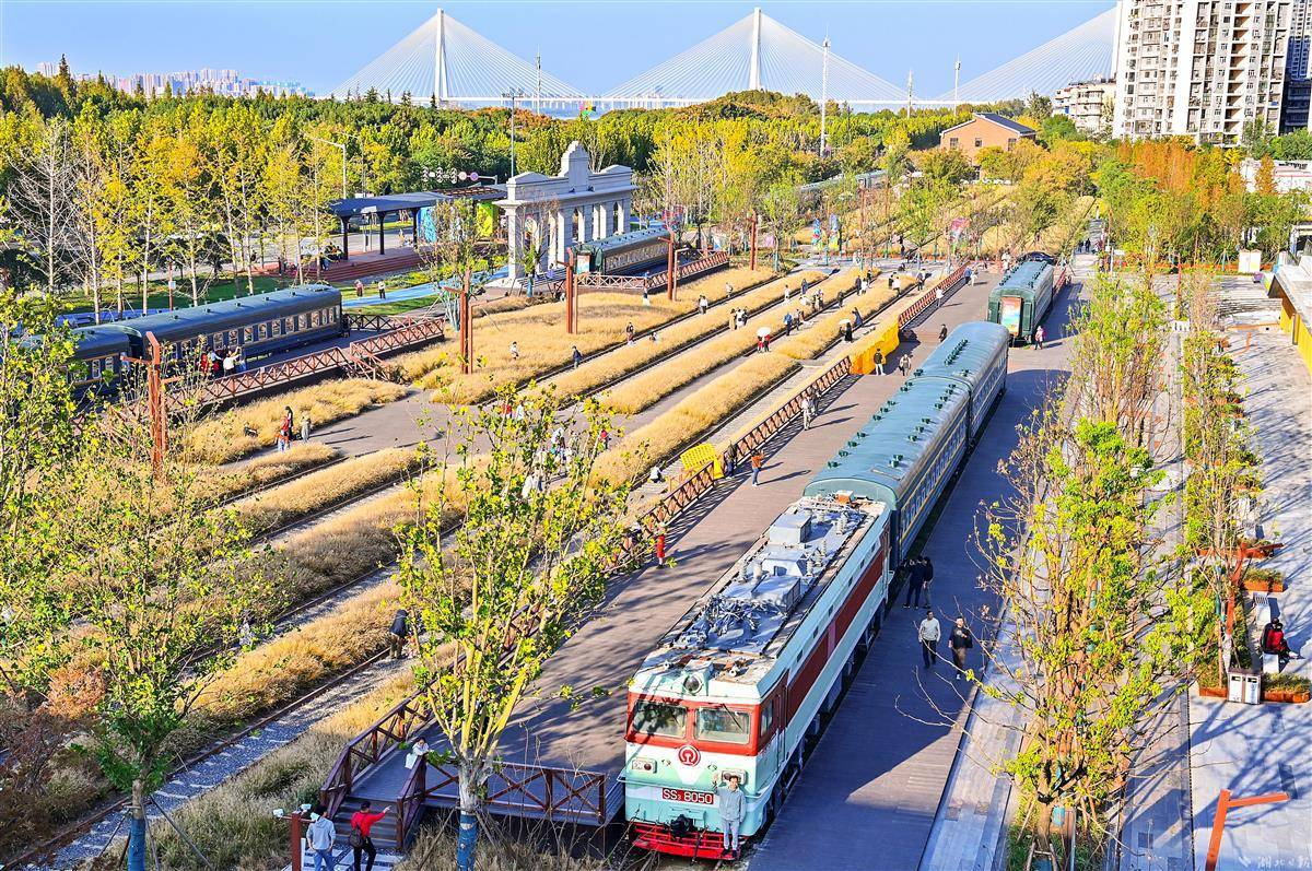 11月3日,许多市民游客在位于武汉长江二桥武昌桥头的四美塘铁路遗址文化公园游玩打卡。11月1日,随着第七届武汉设计双年展在此开幕,这处地标已揭开面纱,全部建成开放。