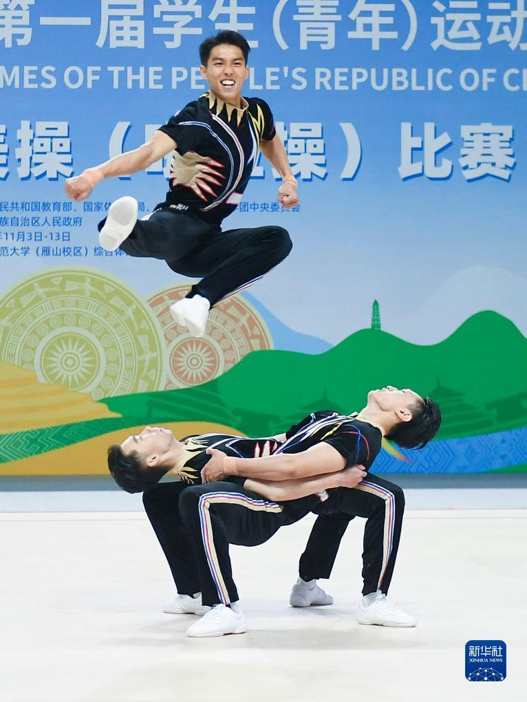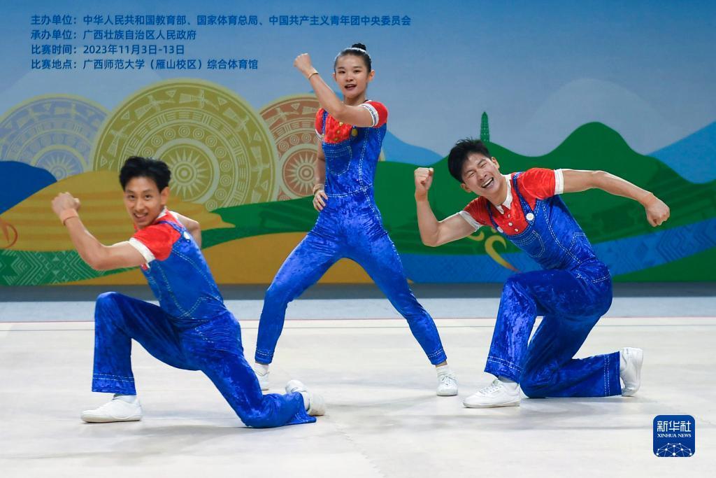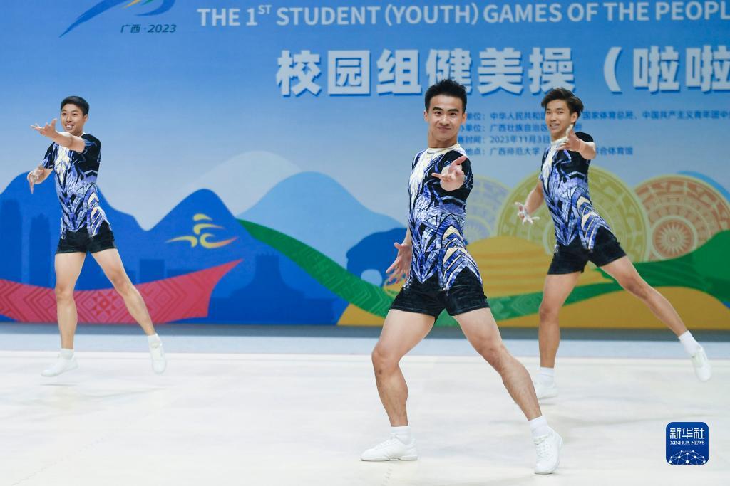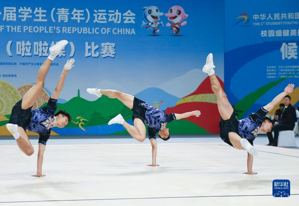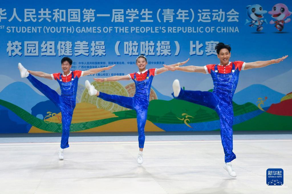 当日,第一届全国学生(青年)运动会健美操大学组三人操决赛在广西师范大学(雁山校区)综合体育馆举行。