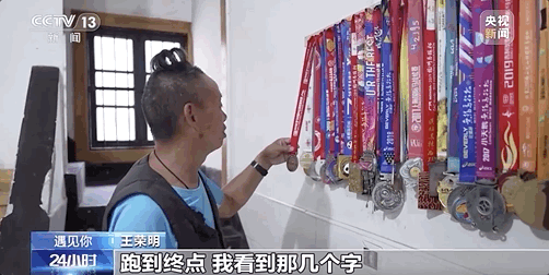 一次偶然,有人邀请王荣明参加跑步比赛,考虑到跑完还能拿奖牌,王荣明同意了。于是,他开始练习跑步,通常是走一段跑一段,隔几天再增加跑步距离。就这样,2012年,在遭遇脑出血之后的第11年,王荣明完成了十公里长跑。