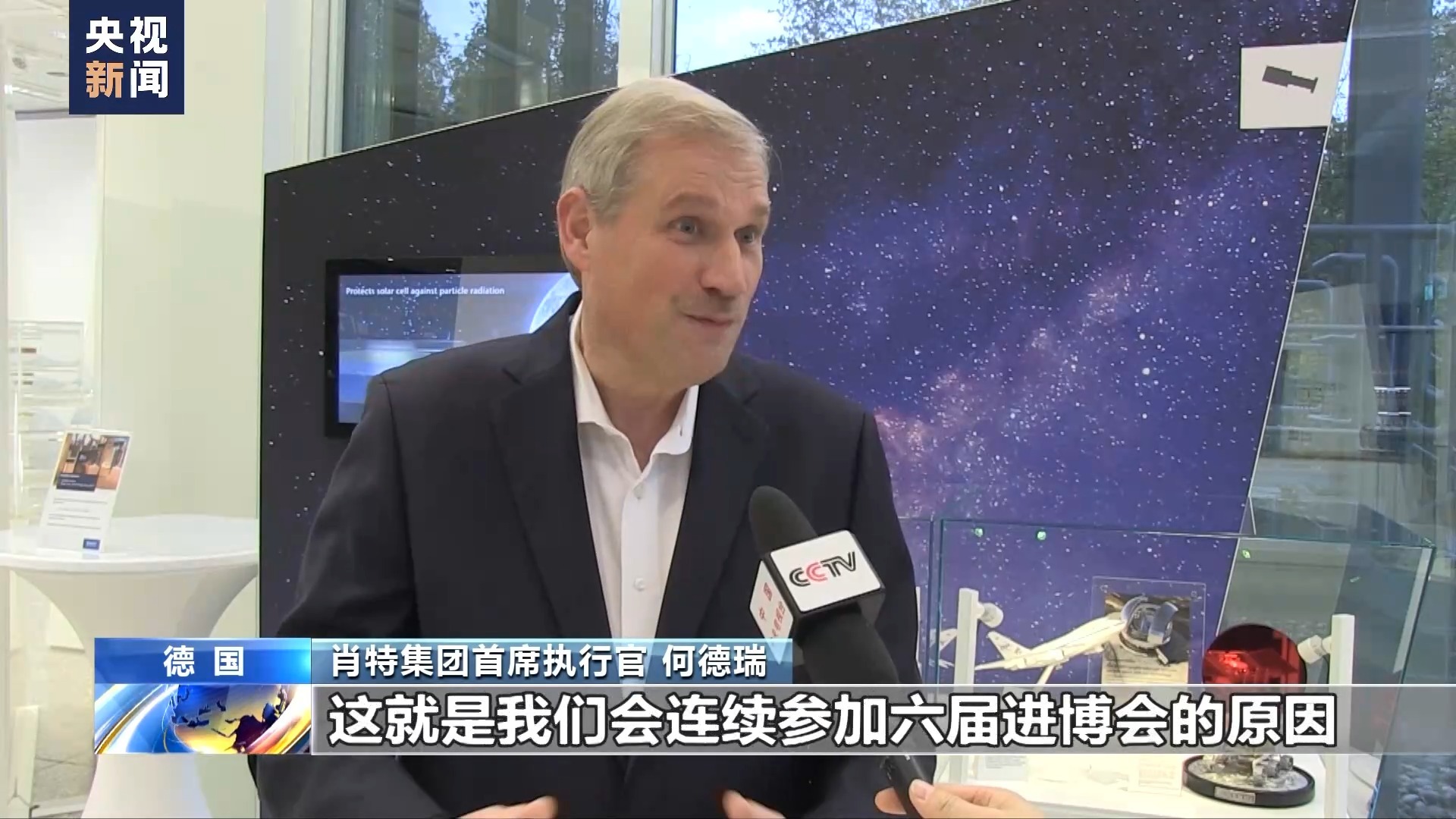国际特种材料制造商德国肖特集团今年是第六次参加进博会,其中有近30款新产品在进博会上完成首秀,涵盖太空与天文、消费电子、医药健康领域。该集团首席执行官何德瑞在接受总台记者采访时表示,进博会带来的持续商机帮助他们在中国市场实现了五年连续增长,肖特集团对未来在中国的业务增长抱有信心,将会继续加大在中国的投资。