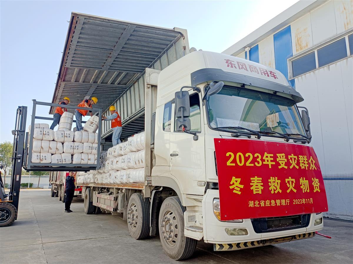 11月8日,几十辆满载救灾物资的卡车从中央救灾物资武汉储备库和宜昌、黄冈、咸宁、恩施、十堰、荆州、襄阳等7个省级救灾物资储备库驶出,17万件省级救灾物资启运,保障受灾困难群众温暖过冬。
