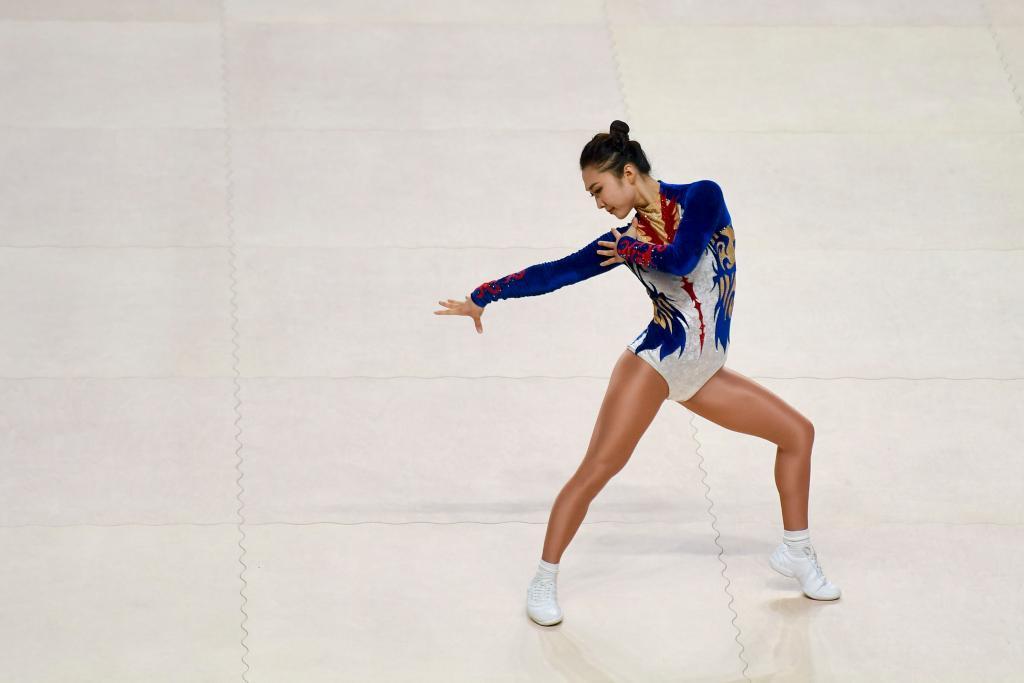 11月6日,上海选手冯蕾在第一届全国学生(青年)运动会健美操大学组女子单人操决赛中获得冠军。新华社记者 侯昭康 摄