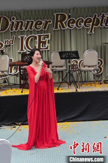 广州新华学院音乐老师邱思晖在晚会上表演节目。受访者供图