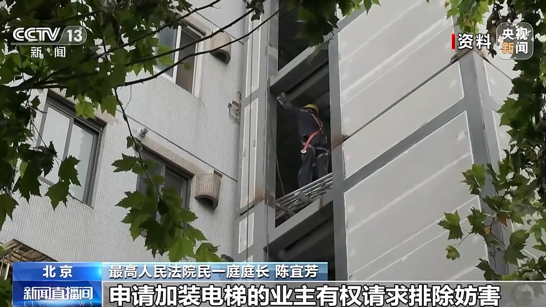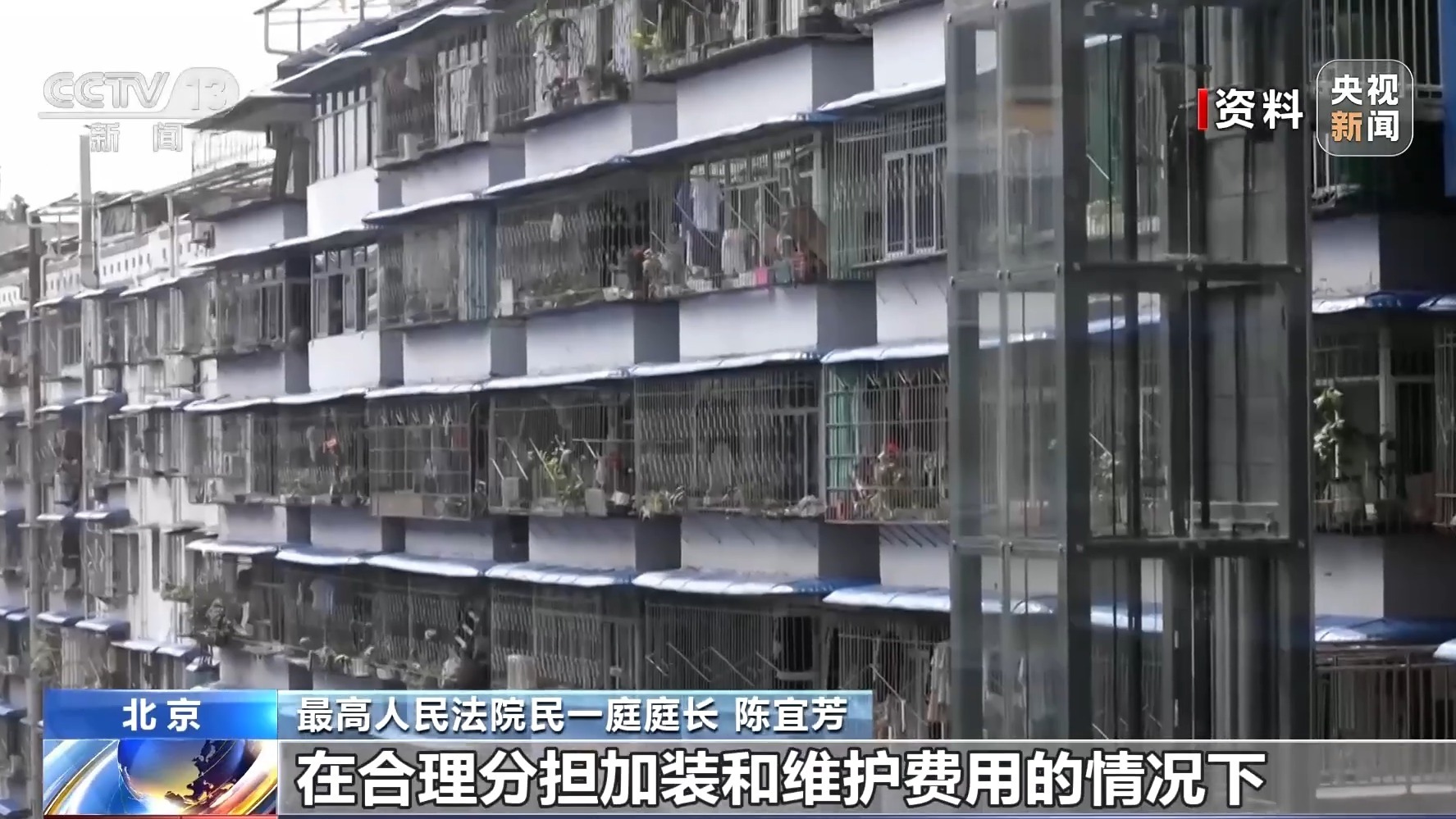 最高人民法院民一庭庭长 陈宜芳:一方面,反对加装电梯的业主不得妨害其他业主合理使用加装电梯;另一方面,反对加装电梯或者未出资加装电梯的业主因生活需要而需使用加装电梯的,在合理分担加装和维护费用的情况下,应当依法受到保护。