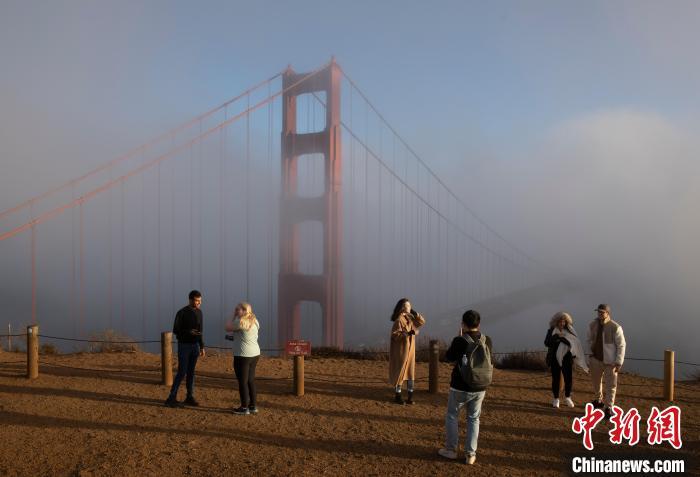 当地时间11月4日,游客参观旧金山金门大桥。 中新社记者 刘关关 摄