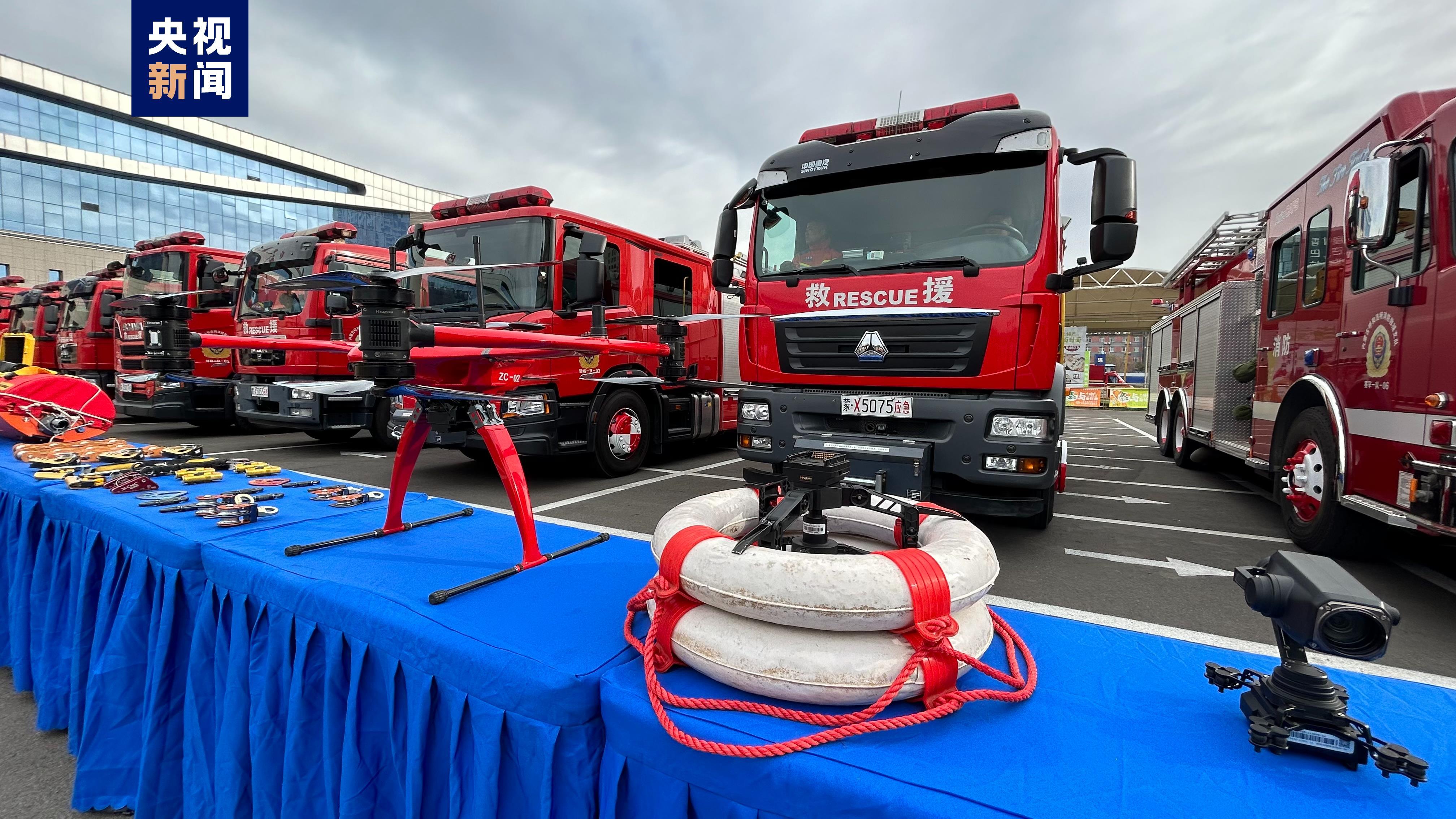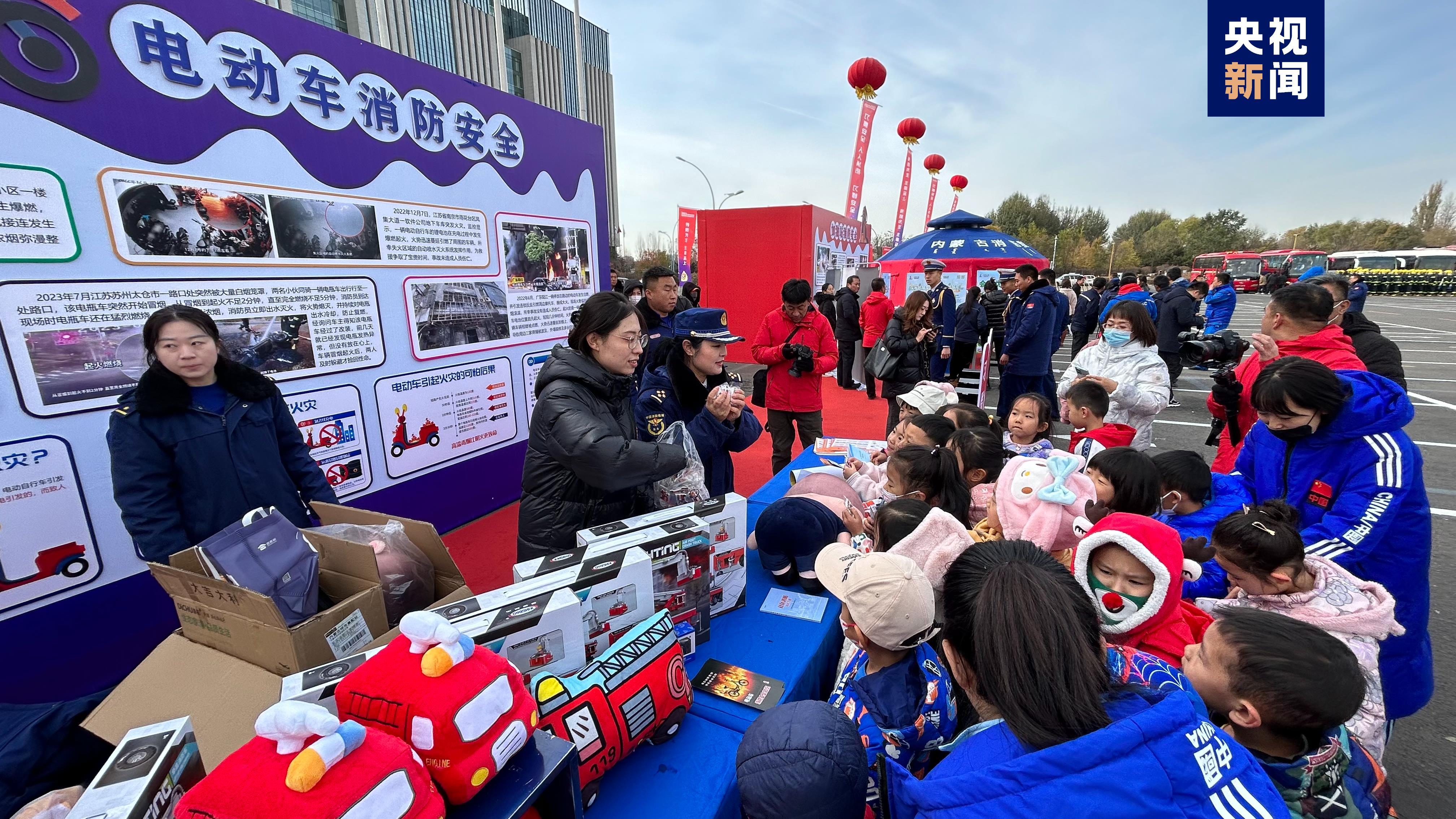 在呼和浩特市,消防救援部门展示消防车辆和先进的装备器材,设置加油站消防安全、电动车消防安全、燃气消防安全、用电消防安全等消防科普区。消防讲解员向市民发放消防宣传资料,为群众普及消防救援知识和逃生技能,帮助排查用火、用电、用气和电动车使用过程中的安全隐患。
