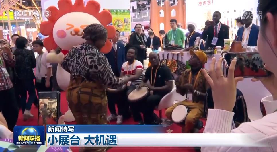 在进博会国家展区,一阵阵欢快的鼓声吸引不少人驻足观看。这象征着丰收和喜悦的鼓声,来自马里的参展商们。展会还没结束,他们便开始迫不及待地庆祝在本届进博会上获得的“好收成”。