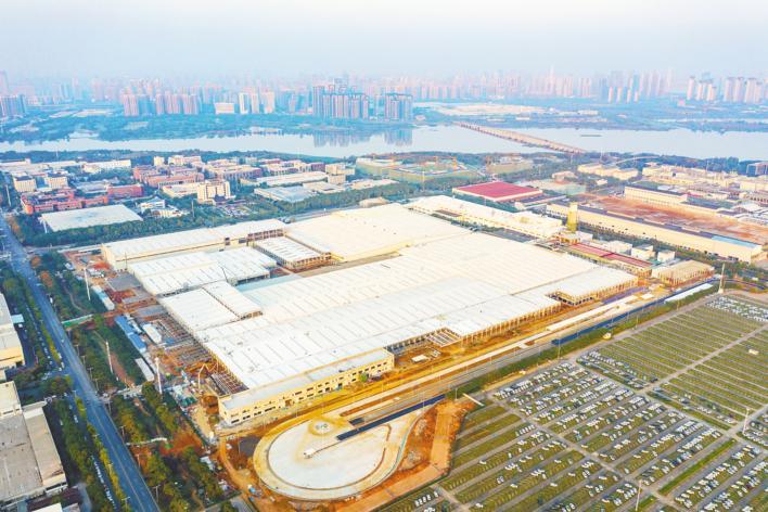 10月30日,俯瞰东风本田新能源工厂建设现场。厂房主体结构完成,试车场已见雏形。这座新工厂,是本田全球布局的首个新能源标杆整车工厂,总投资约100亿元,将生产本田全新的电动汽车,预计2024年投产,初期产能12万辆。
