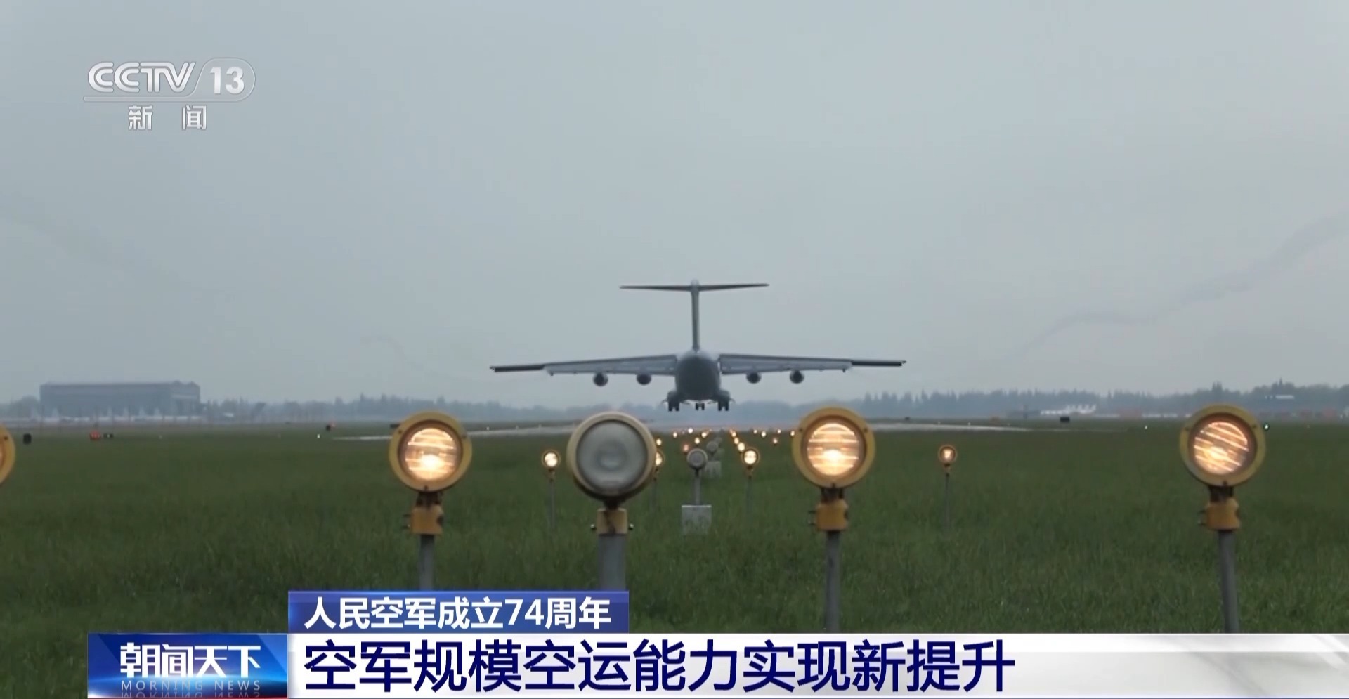 今天是空军成立74周年纪念日。74年来,人民空军一代代官兵用实际行动,守护祖国空天安全,把忠诚和使命镌刻在祖国的蓝天。日前,空军结合实战化训练检验规模空运能力,指挥运-20、运-9等多型运输机,组织完成大机群广域空运任务,在兵力规模、航程、空运时间等方面实现新的突破。