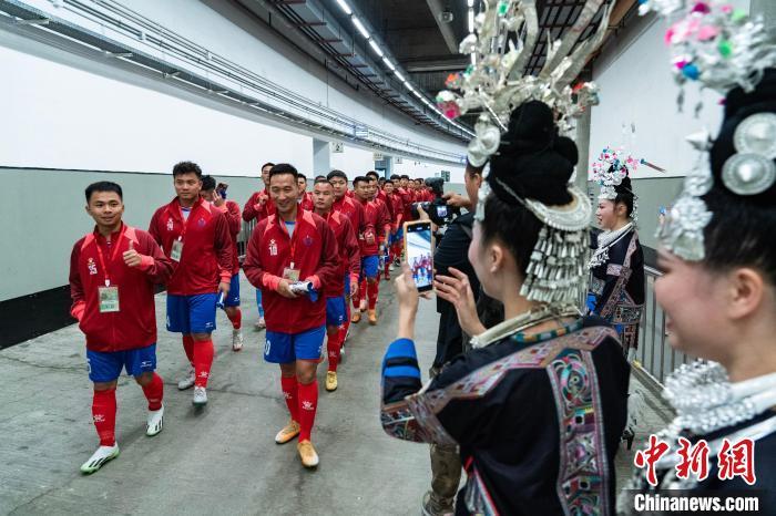 11月11日,香港明星足球队在香港特区香港大球场与应邀前来的贵州省榕江“村超”联队进行一场足球友谊赛。双方队员在场上积极进行体育比拼,场下和休息环节则展开各自代表性的文艺交流,气氛活跃,令现场观众大饱眼福。今年8月,香港明星足球队曾前往贵州省进行交流比赛。