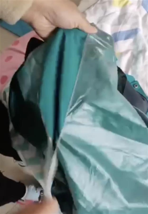 视频显示,有家长将一件校服夹层拆开后,发现衣服内部表层附着了一层类似塑料薄膜的物质,轻轻一扯便能将其拉下来。不少网友对校服的质量产生怀疑,但也有网友称,雨衣的内层也有类似物质,可能是防水层。