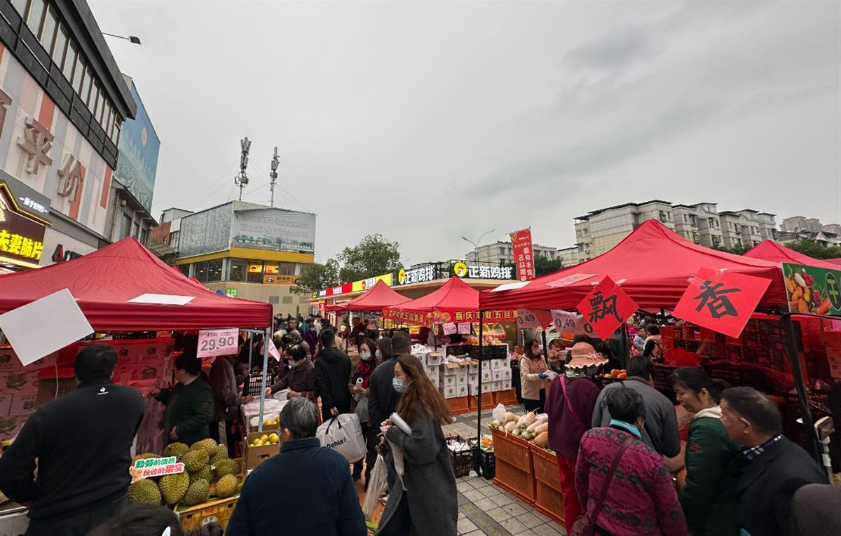 “这橘子是才采摘送来的,蛮新鲜,很甜的……”在武汉市武昌区南湖街中商平价广场上,数十个摊位整齐排列,摆满了各类商品,市民们穿行在摊位之间,不时驻足咨询、选购。