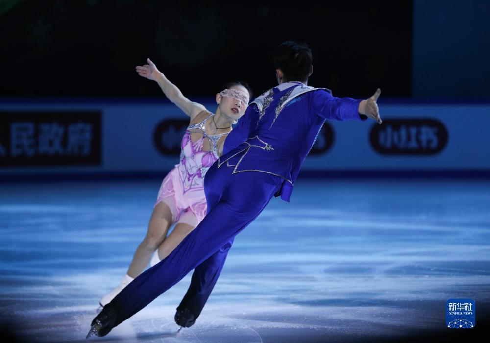 11月12日,双人滑比赛冠军加拿大组合斯特拉托(上)/德尚在表演滑中。新华社记者 储加音 摄