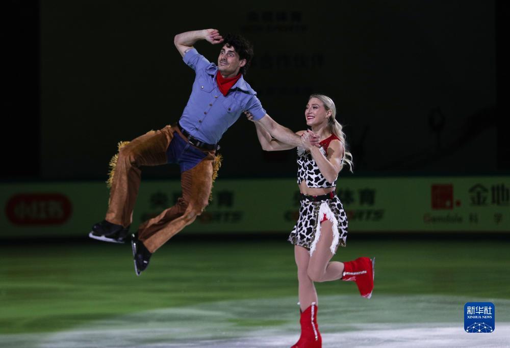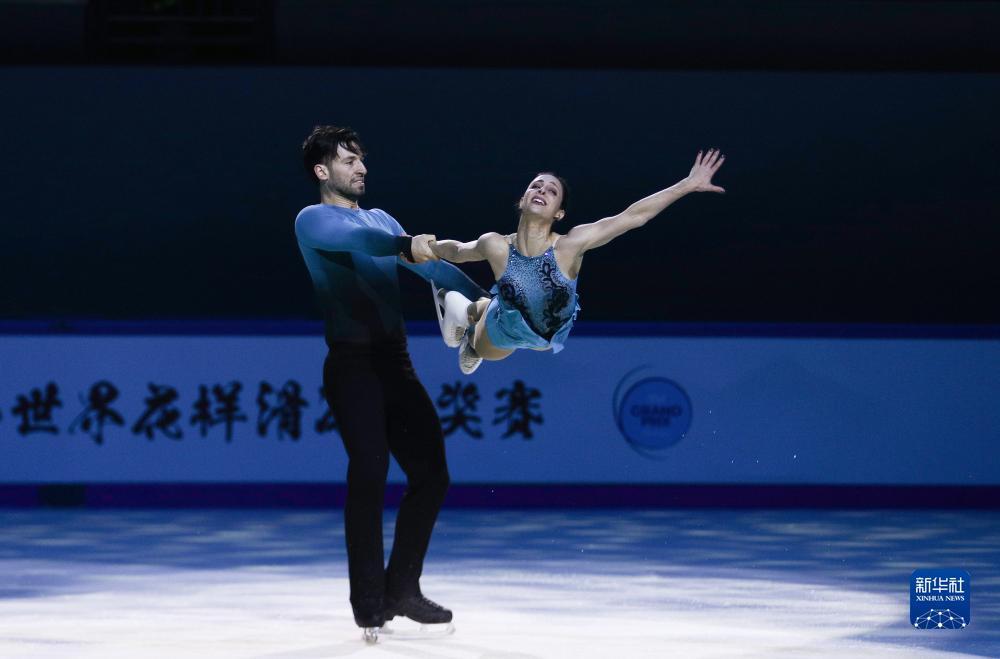 11月12日,冰舞比赛冠军加拿大组合派珀·吉勒斯(右)/保罗·波里尔在表演滑中。新华社记者 许雅楠 摄