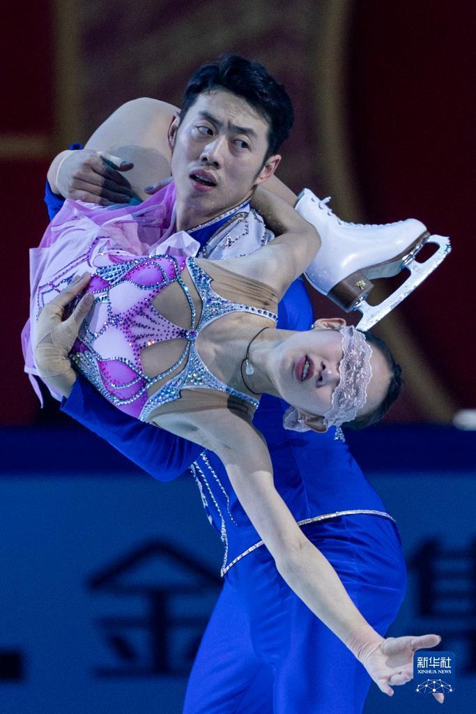 11月12日,中国组合彭程(前)/王磊在表演滑中。新华社记者 储加音 摄