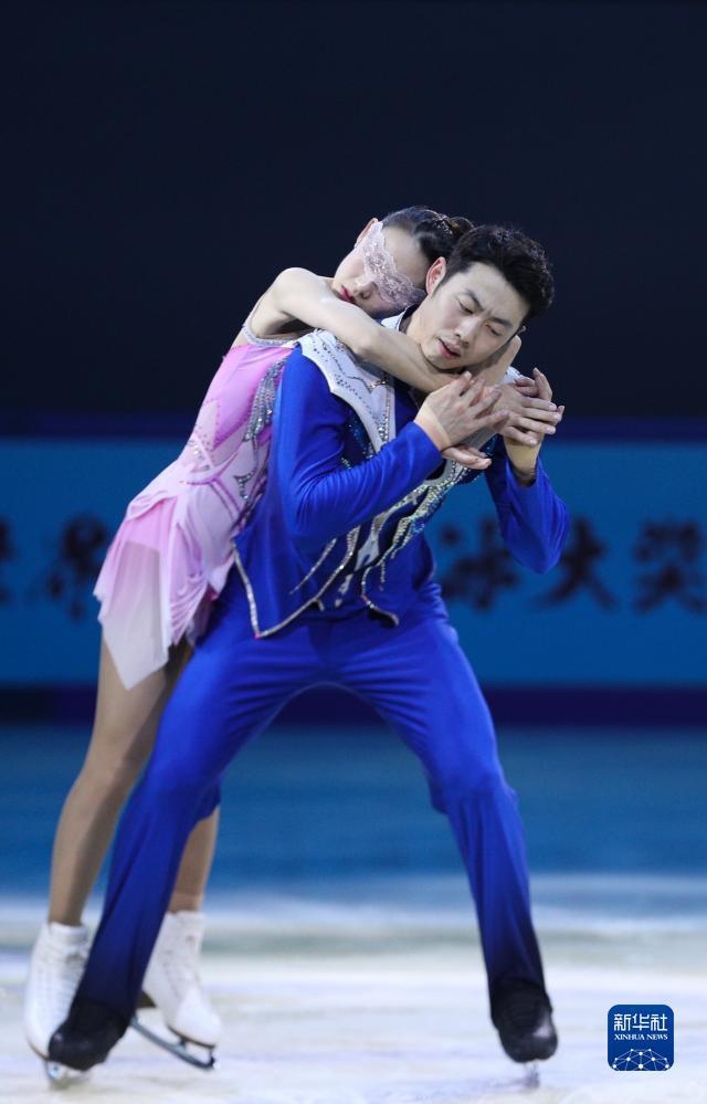 11月12日,双人滑比赛冠军加拿大组合斯特拉托(右)/德尚在表演滑中。新华社记者 许雅楠 摄