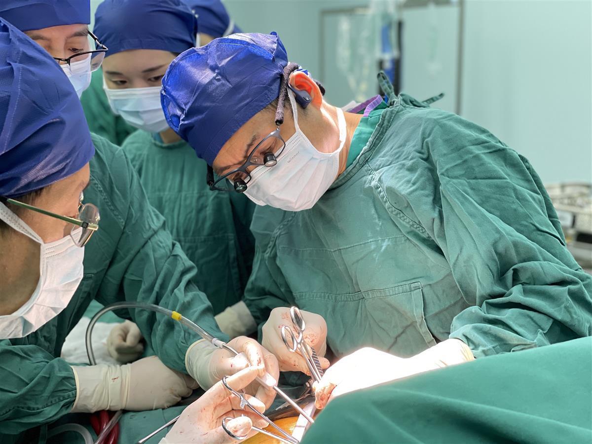 为将手术风险和创伤降到最低,夏军主任决定迎难而上,以微创方式植入人工心脏。在麻醉科、手术室的保驾护航下,夏军教授带领团队分别在胸骨上段和左侧肋骨间打开两个微创小切口,成功植入人工心脏,并让全身的血液有效循环起来。