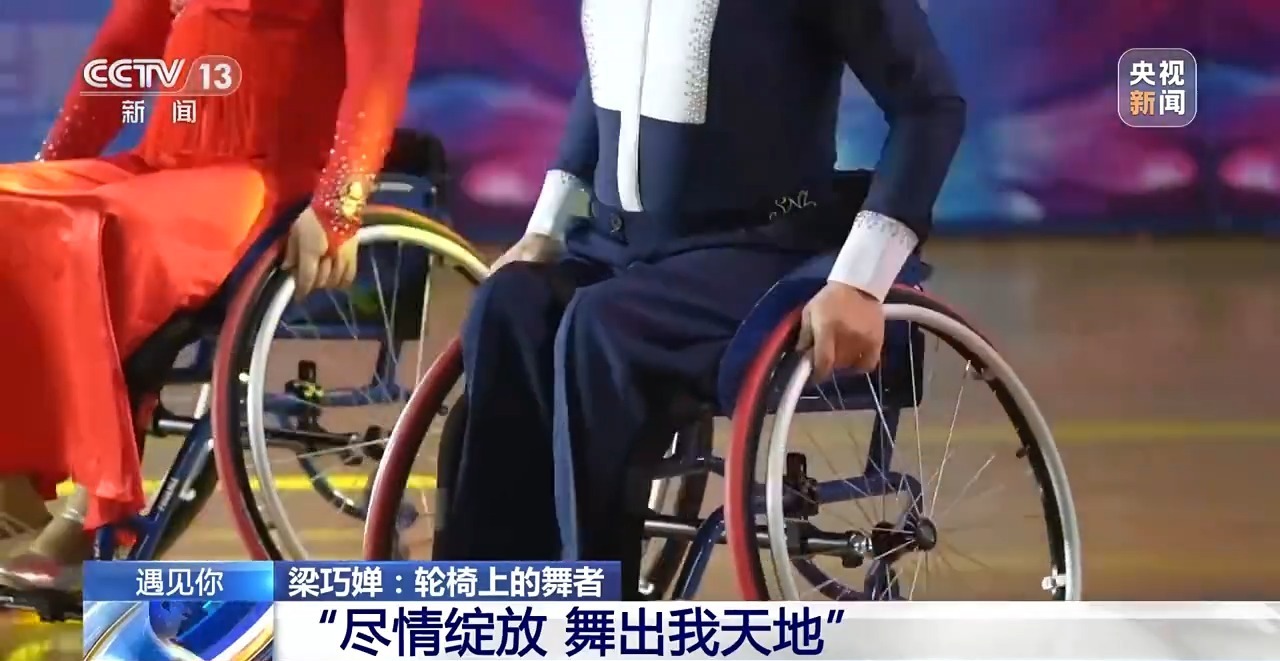 大屏幕上的女孩,名叫梁巧婵,今年29岁,在她1岁多时,因疾病导致腿部残疾,行走不便。但就是这样一位患有腿疾的姑娘,却多次登上舞蹈冠军的宝座。在2019年,更是在全国第十届残运会上获得三金一银的好成绩。在最近举行的全国轮椅舞蹈邀请赛中,她也一举获得了两个项目第一名、三个项目第二名的好成绩。