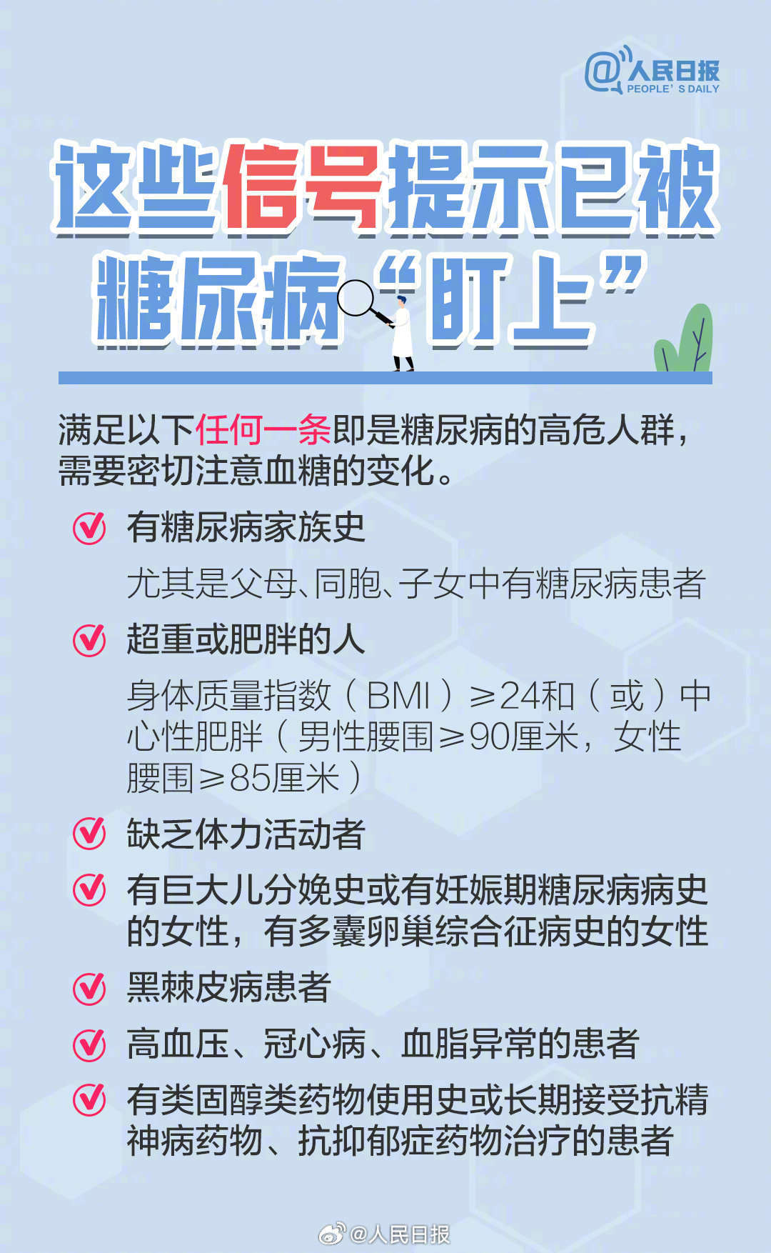 最新数据显示,我国糖尿病患病率已达12.8%,我国有超1.4亿人患糖尿病。糖尿病是一种代谢性疾病,专家提示,包括儿童、青年人在内的任何年龄都可能得糖尿病。哪种信号提示你已经被糖尿病“盯上”?为什么有的年轻人血糖会升高?今天,联合国糖尿病日。收藏提醒↓↓