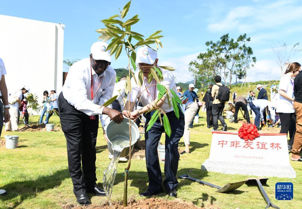 11月14日,参加中非农业合作论坛的嘉宾在海南省三亚市吉阳区大茅村共植中非友谊林。