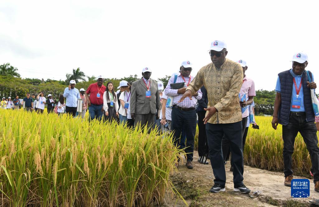 11月14日,参加中非农业合作论坛的嘉宾在海南省三亚市海棠湾水稻国家公园参观。