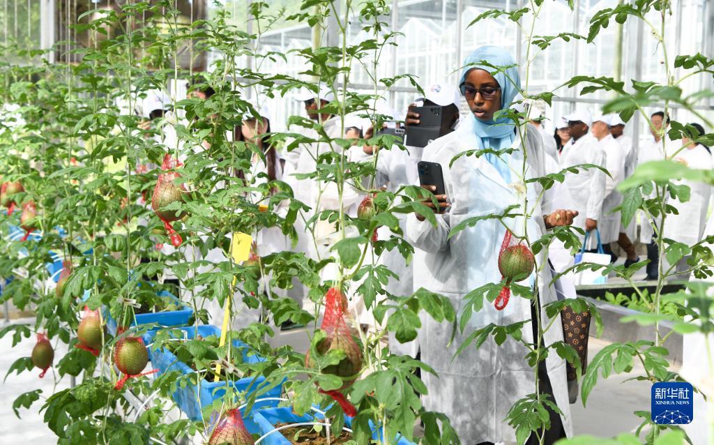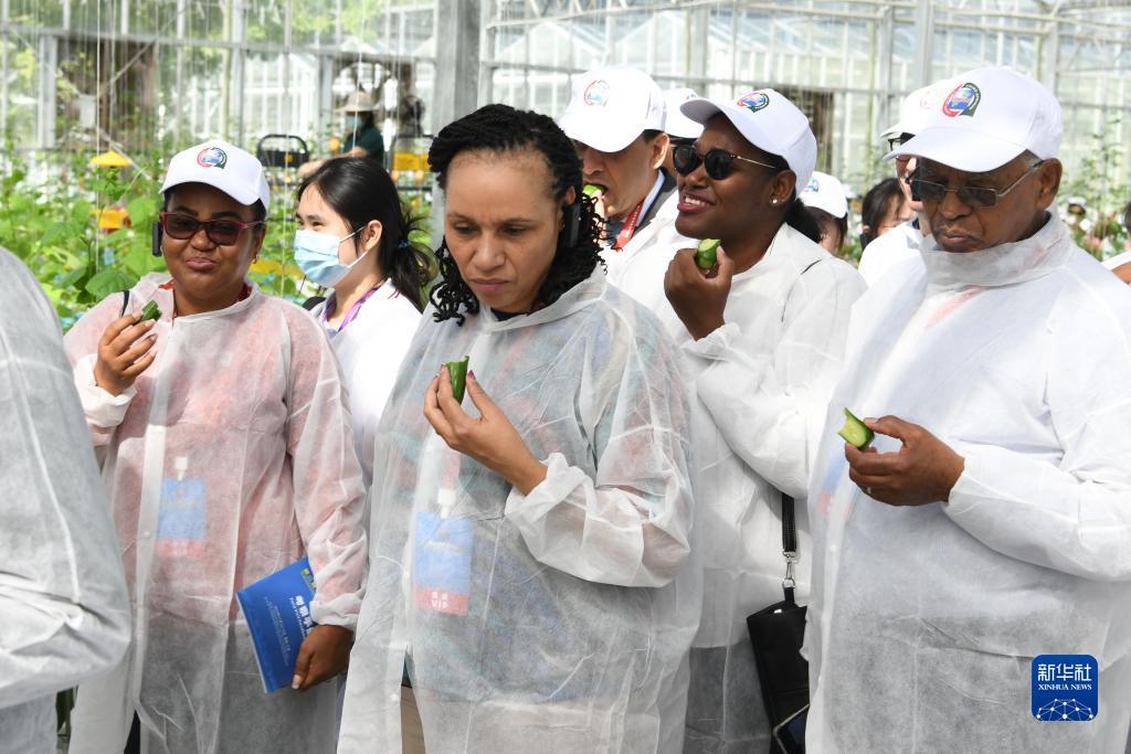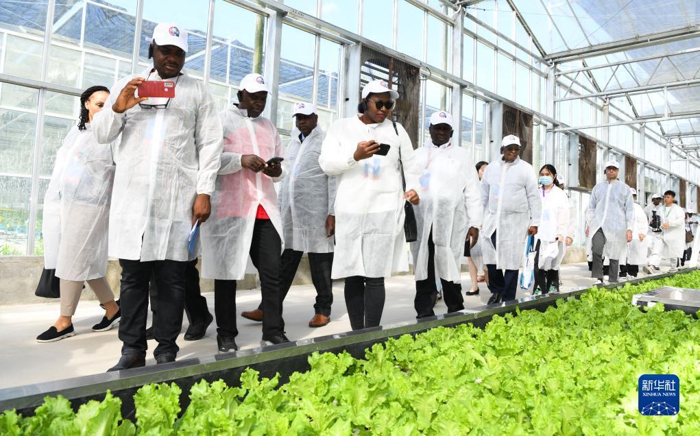 当日,参加中非农业合作论坛的嘉宾来到海南省三亚市的现代农业基地走访参观,了解中国现代农业发展情况。