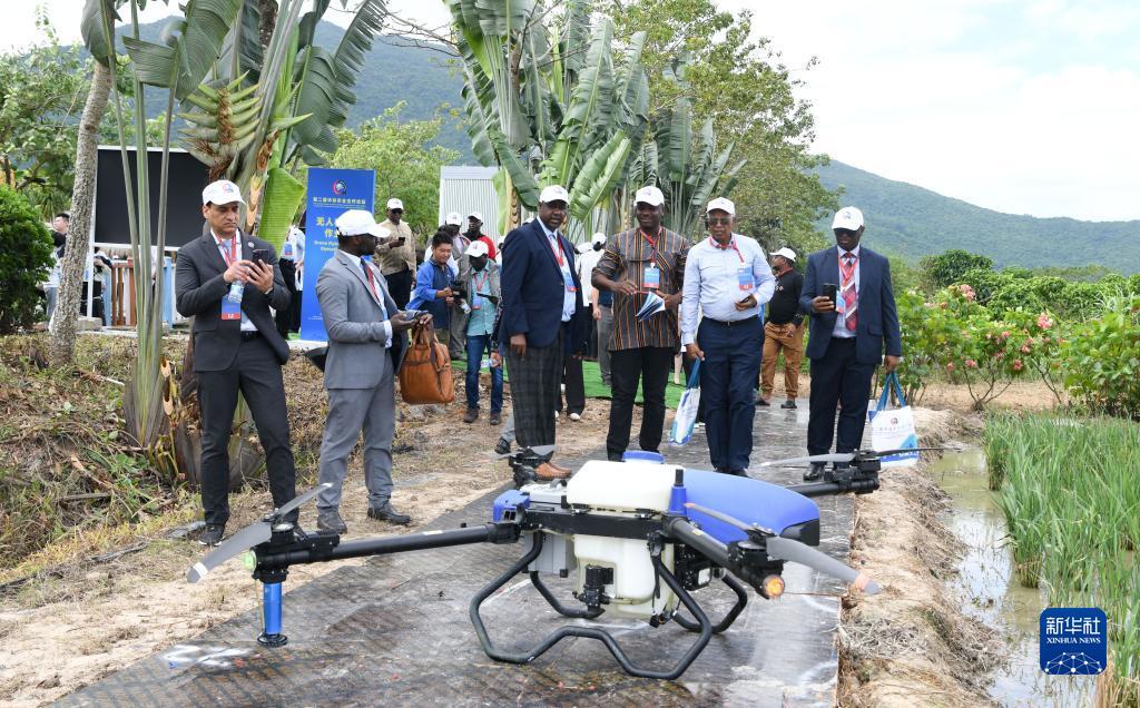 11月14日,参加中非农业合作论坛的嘉宾在海南省三亚市海棠湾水稻国家公园拍摄了解无人机。