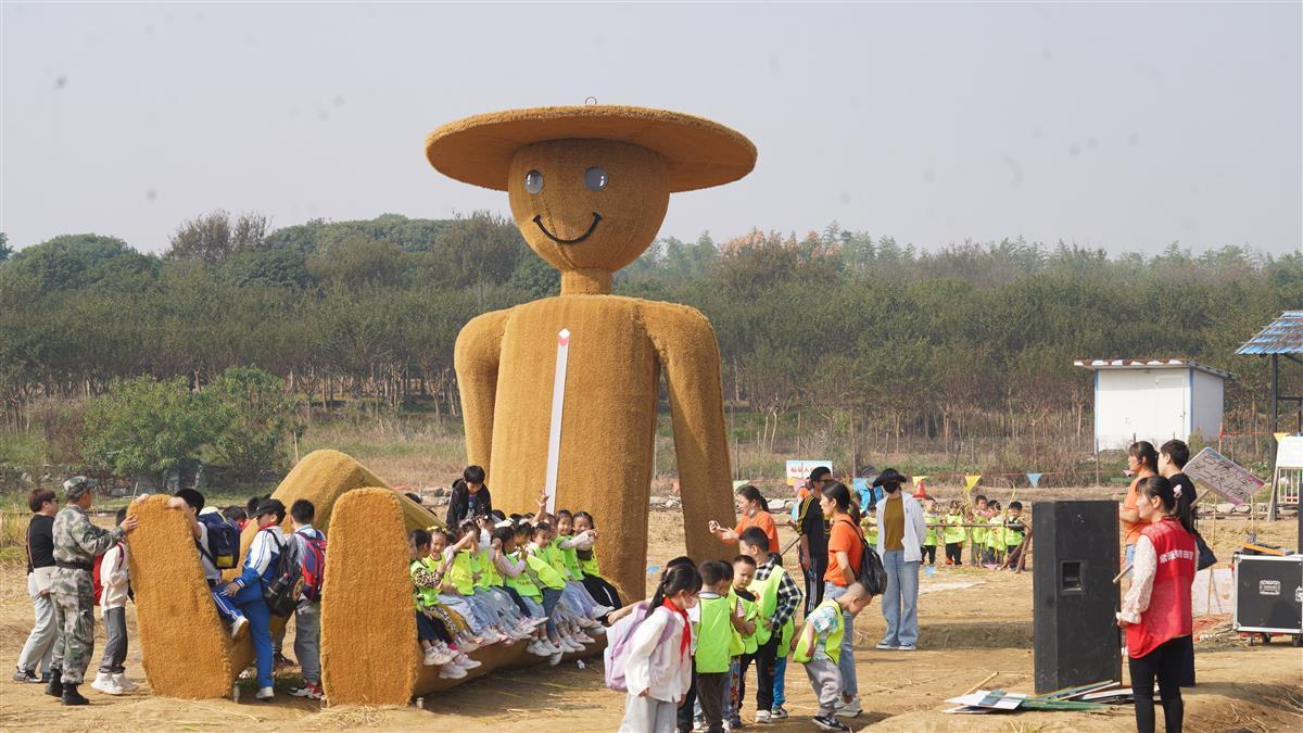 从人气爆棚的香草露营基地,到充满欢声笑语的拓展营地,再到宽敞辽阔的货车营地,记者最后来到了金黄色的“稻田拾秋”大课堂,与静静坐在田垄之上的巨型稻草人,来了一次亲密接触。